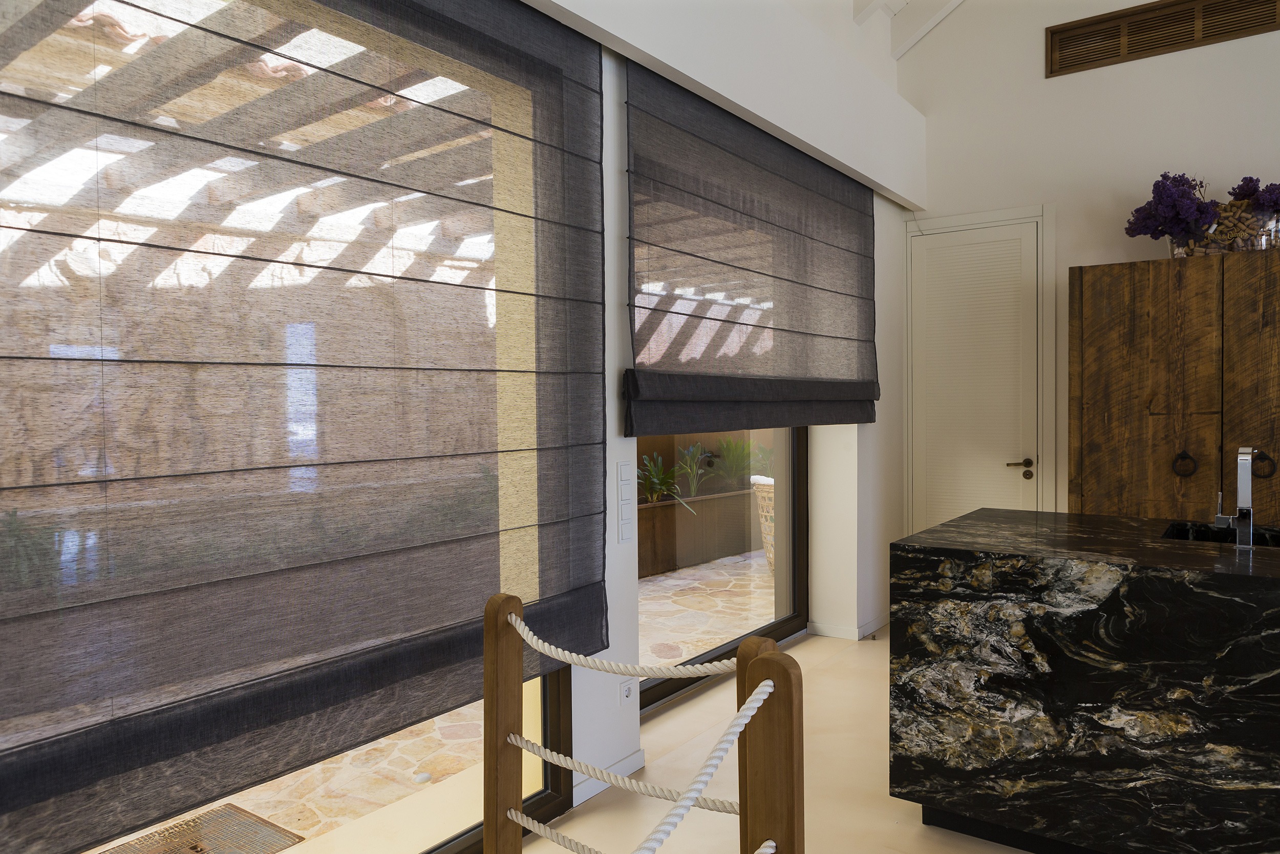 Bandalux folding shades offer unlimited possibilities and configuration options thanks to their multiple styles of construction and the wide range of fabrics. They feature three construction options with rods to provide greater rigidity and one option without rods for a free-hanging fabric. A wide variety of textures and colors is available.