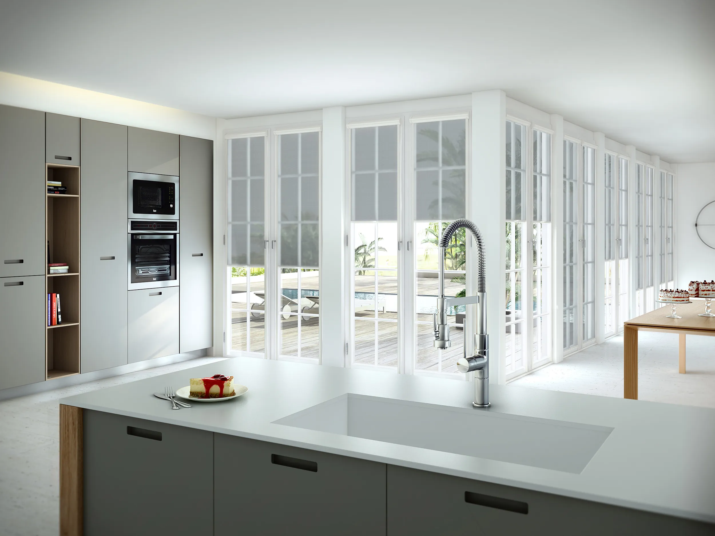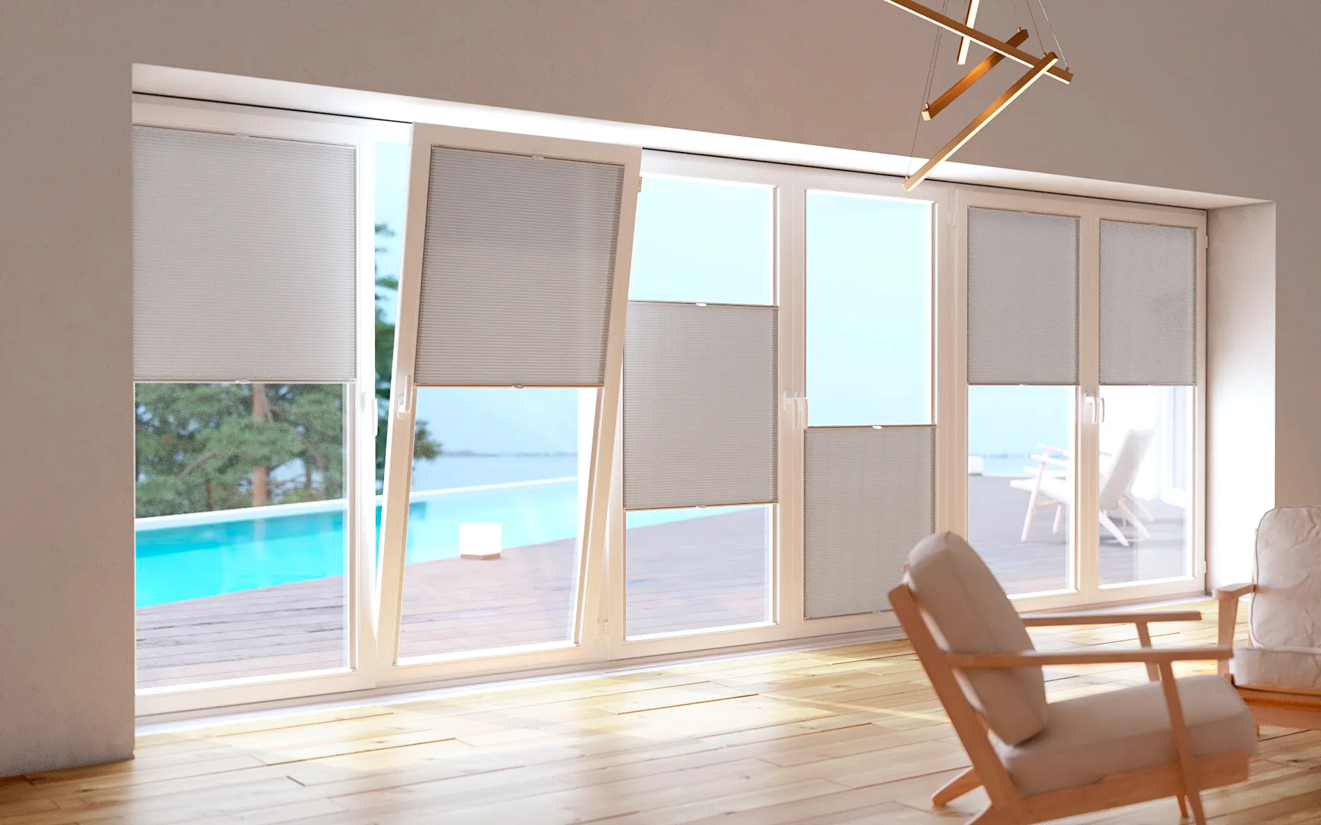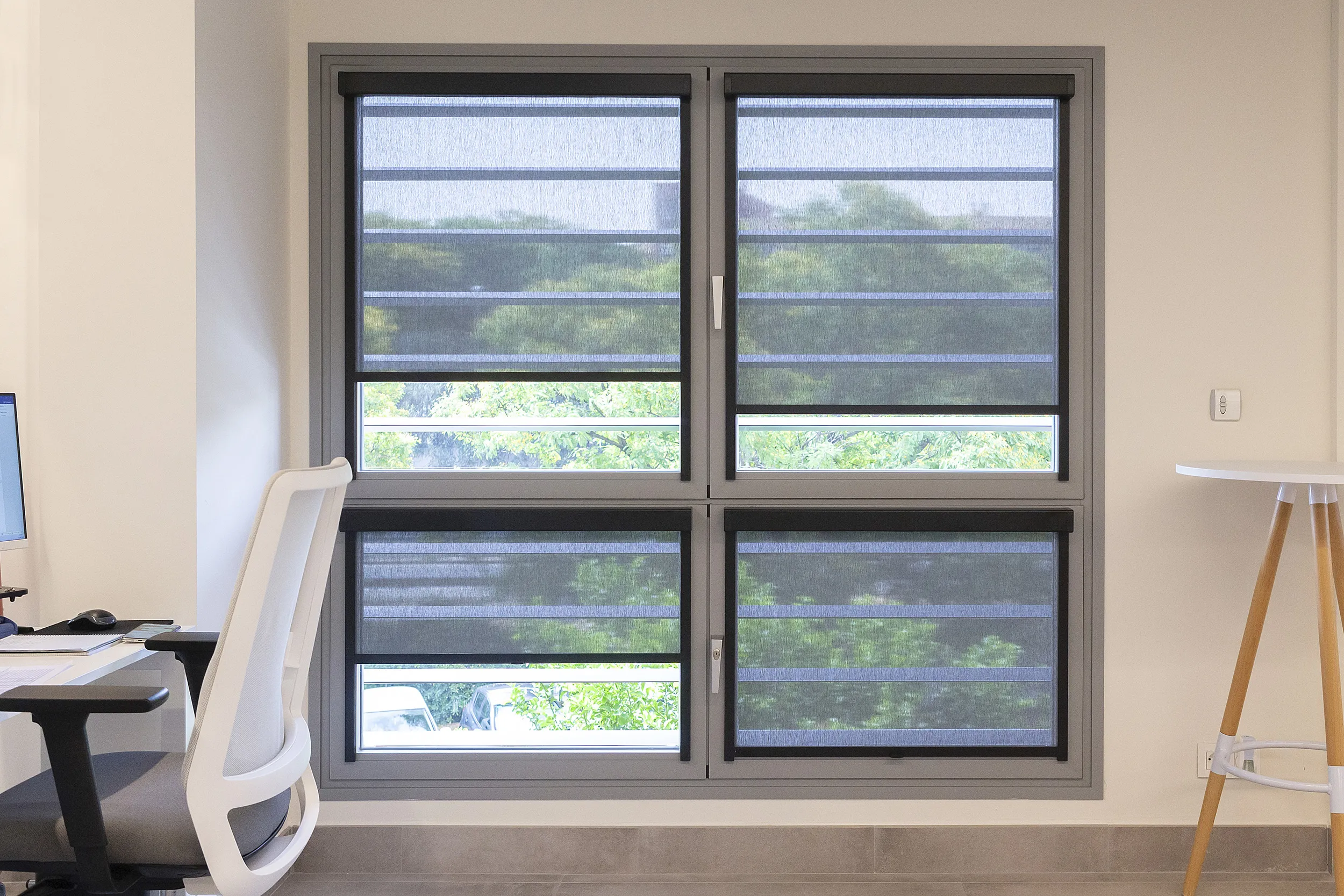 Practical and versatile shades designed to be installed without drilling into window and glazed door frames. Easy to mount, these solutions fit perfectly on the frame, respecting moldings and handles, while ensuring maximum natural light without affecting functionality. Available in various finishes that blend discreetly to maintain harmony in the space.