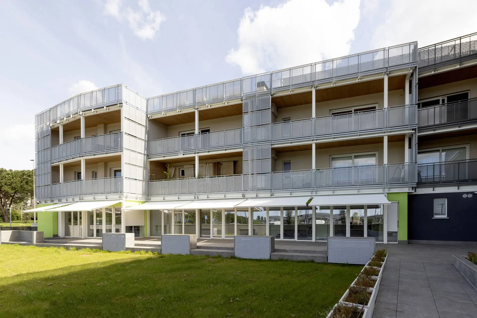 Bandalux systems play a key role in this eco-friendly design. On the exterior, the Z-Box system with Blackout fabric provides superior privacy and solar protection. On the ground floor, Bandalux box-style awnings with White Linen Screen offer both functional shade and visual harmony. Inside the apartments, Premium Plus roller shades with Pearl White Screen deliver elegant solar and thermal protection, enhancing indoor comfort.