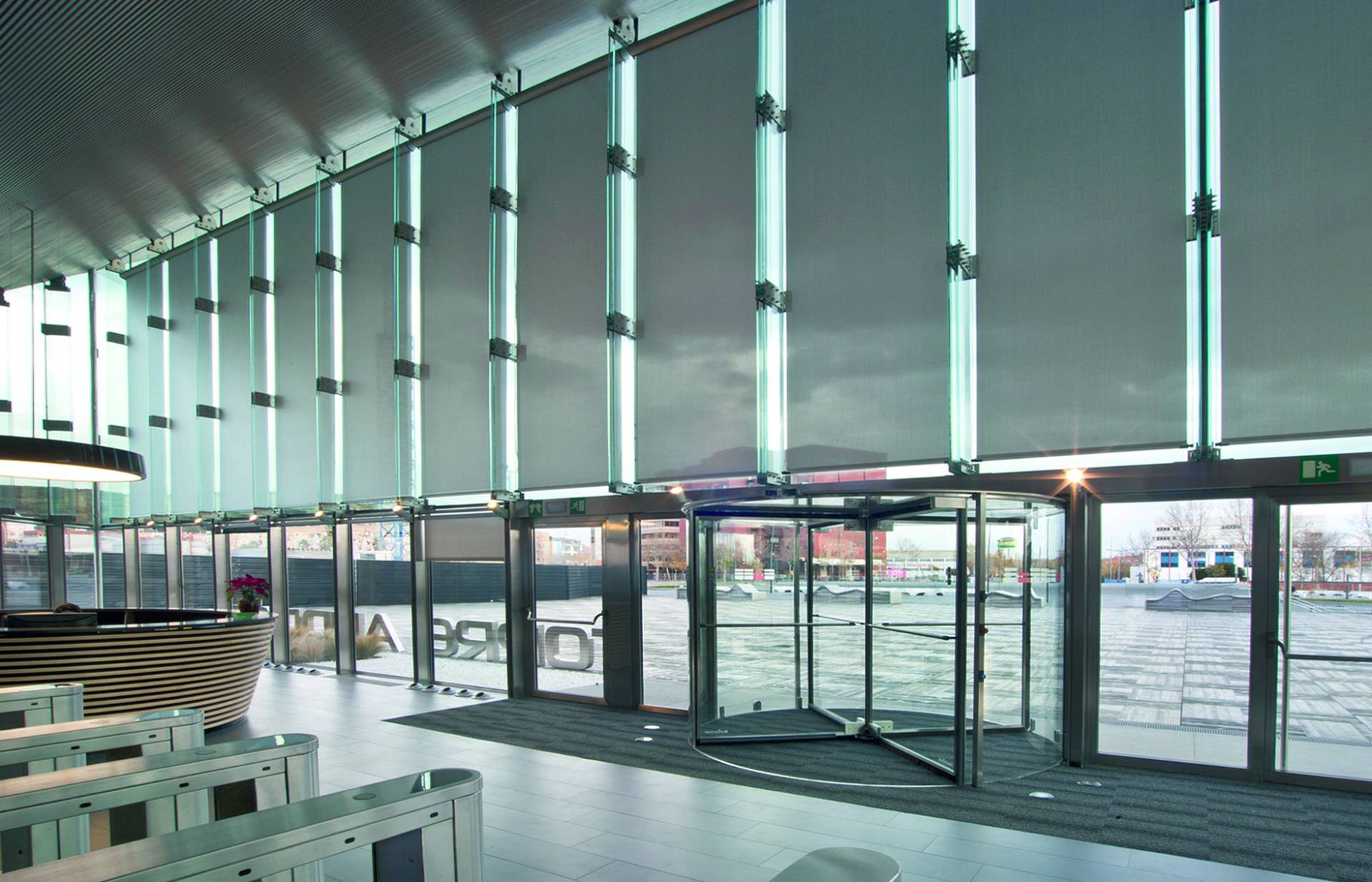 In this building, our O-Box roller shades provide optimal solar control and thermal protection, helping reduce air conditioning and heating consumption. Thanks to cable guidance, the fabric always remains perfectly taut.