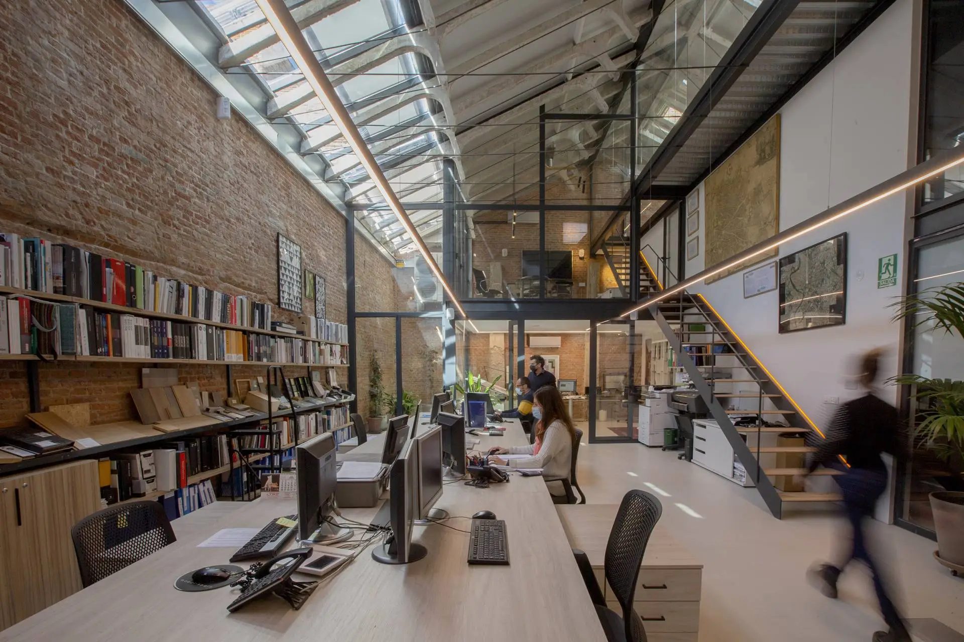 The design is based on the use of glass and steel to maintain the industrial feel of the space.