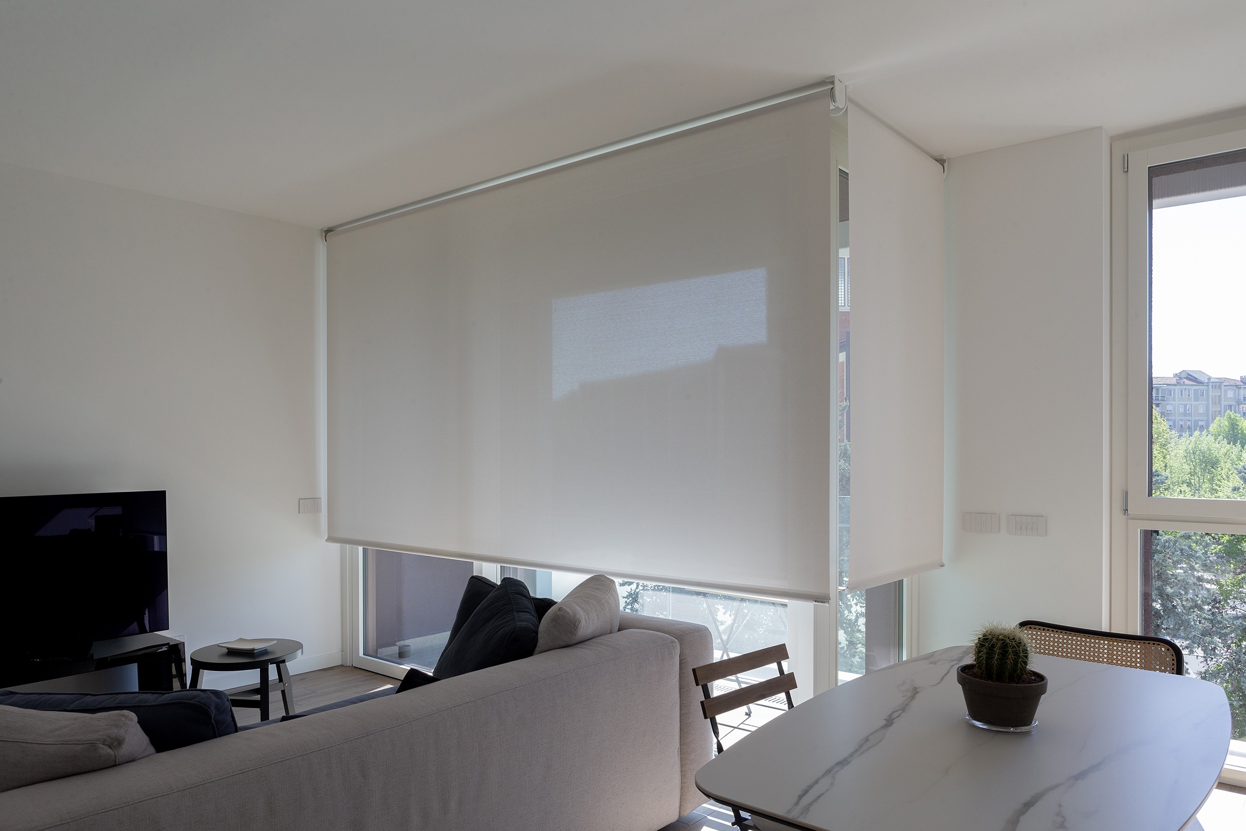 For this project, Bandalux installed Premium Plus roller shades with Screen fabric. This solution enhances comfort by providing superior solar and thermal protection, making living spaces more pleasant while complementing the refined aesthetics of the building.