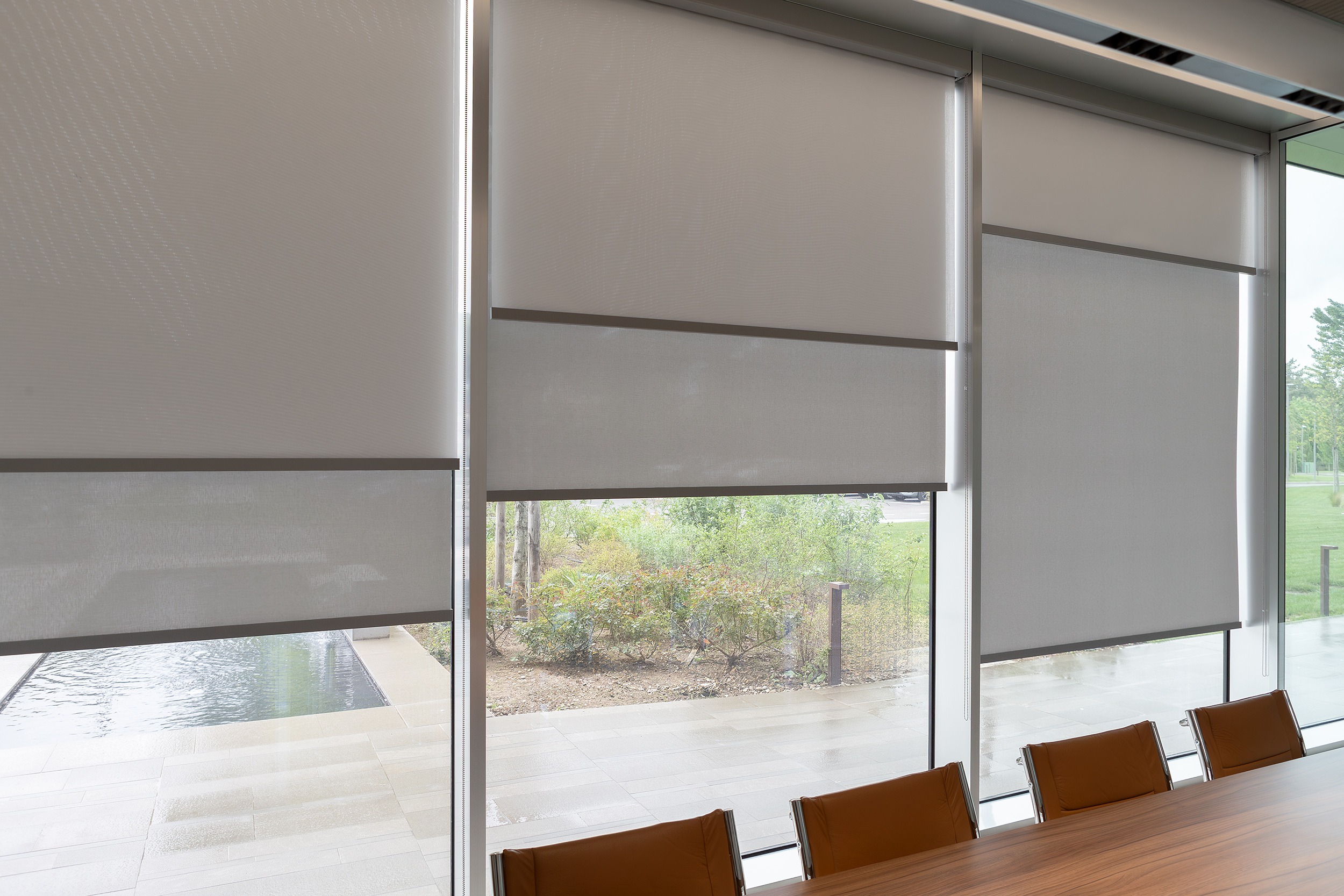 For this project, the architects selected the Bandalux Premium Plus Duo system, which combines opaque and screen fabrics. This choice is ideal for an office environment, providing flexibility: total privacy and light blocking with the opaque fabric, or natural light and thermal protection with the Screen fabric, while maintaining a certain level of openness.