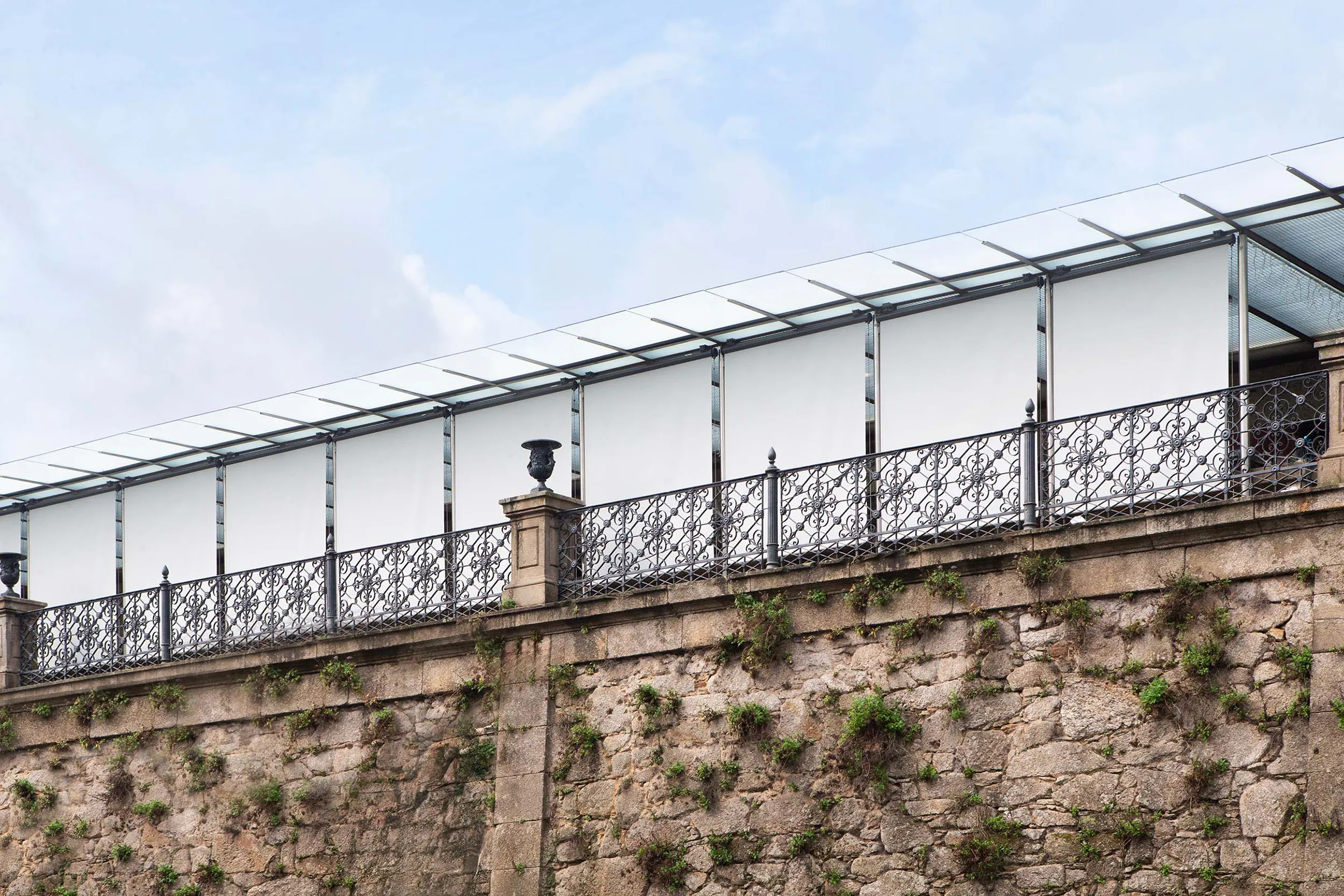The use of Screen fabric allows natural light to filter through while maintaining clear views of the urban surroundings. In addition, it provides effective solar protection and visual comfort, key aspects in a place that receives a high volume of visitors throughout the day.