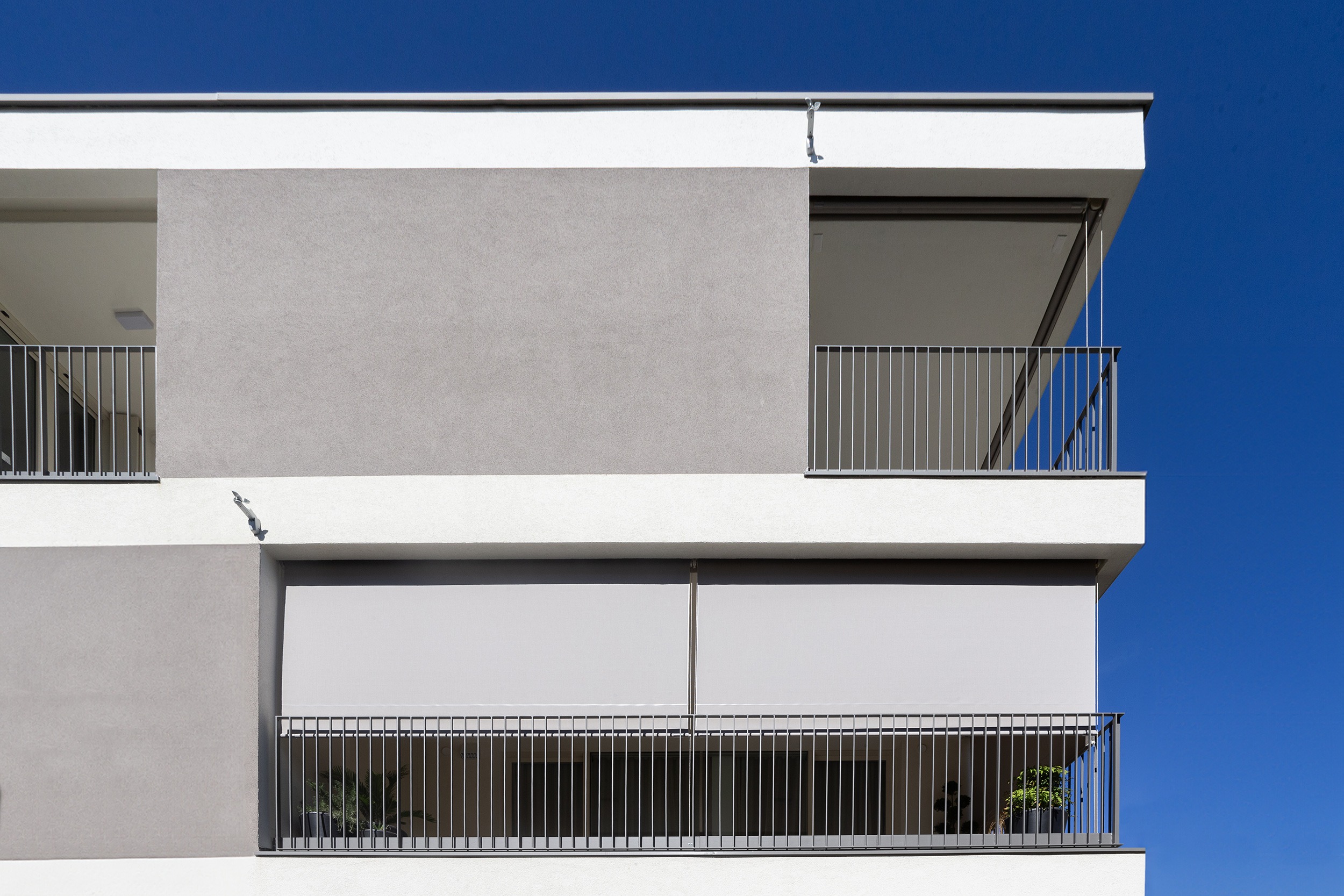 For the terraces, Bandalux provided an elegant solution with its Premium Plus roller shades. At the corners, two blinds are joined to ensure total privacy in the expansive terrace areas. The incorporation of cable guides ensures that the fabric stays in place even in windy conditions, offering both functional and aesthetic advantages.