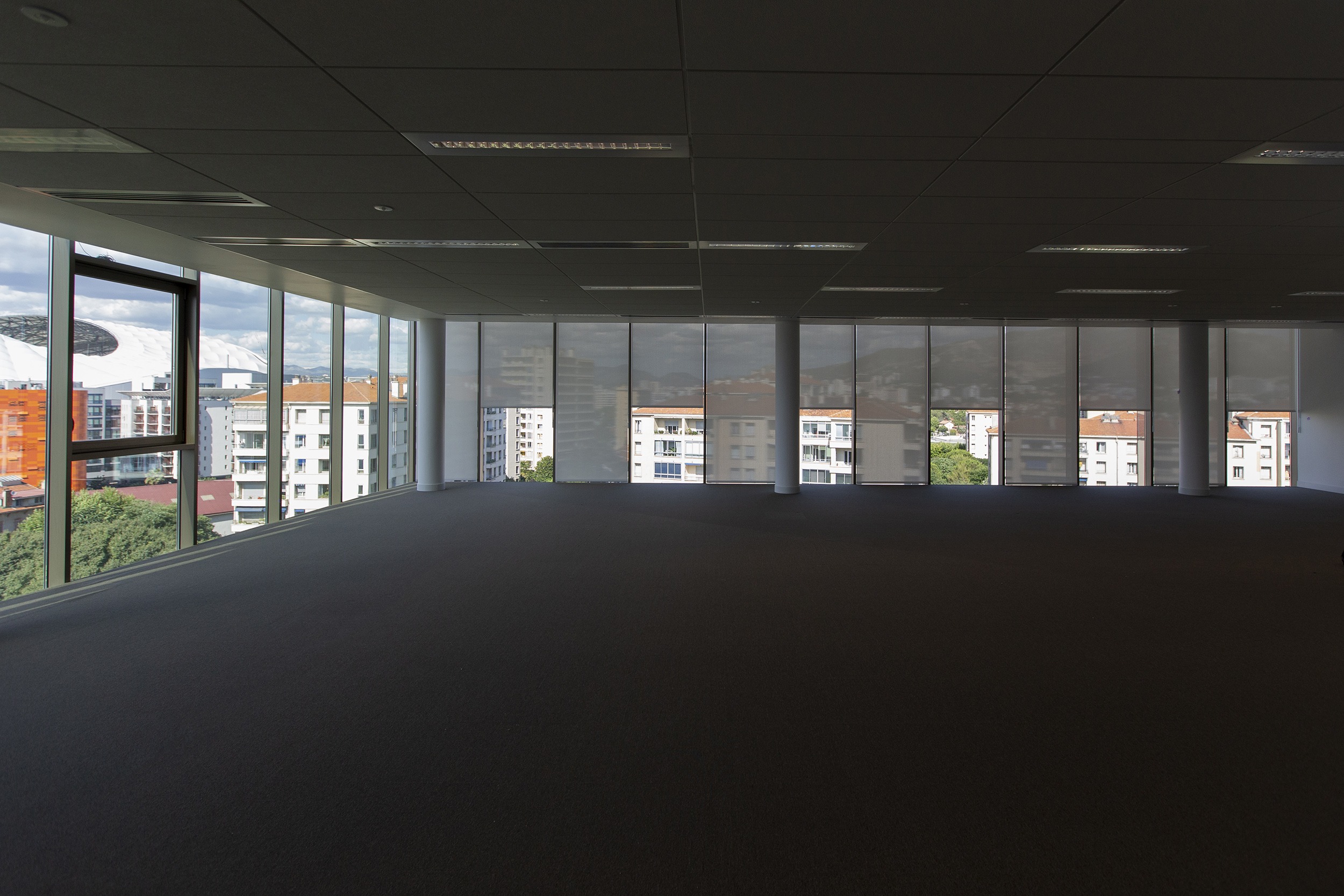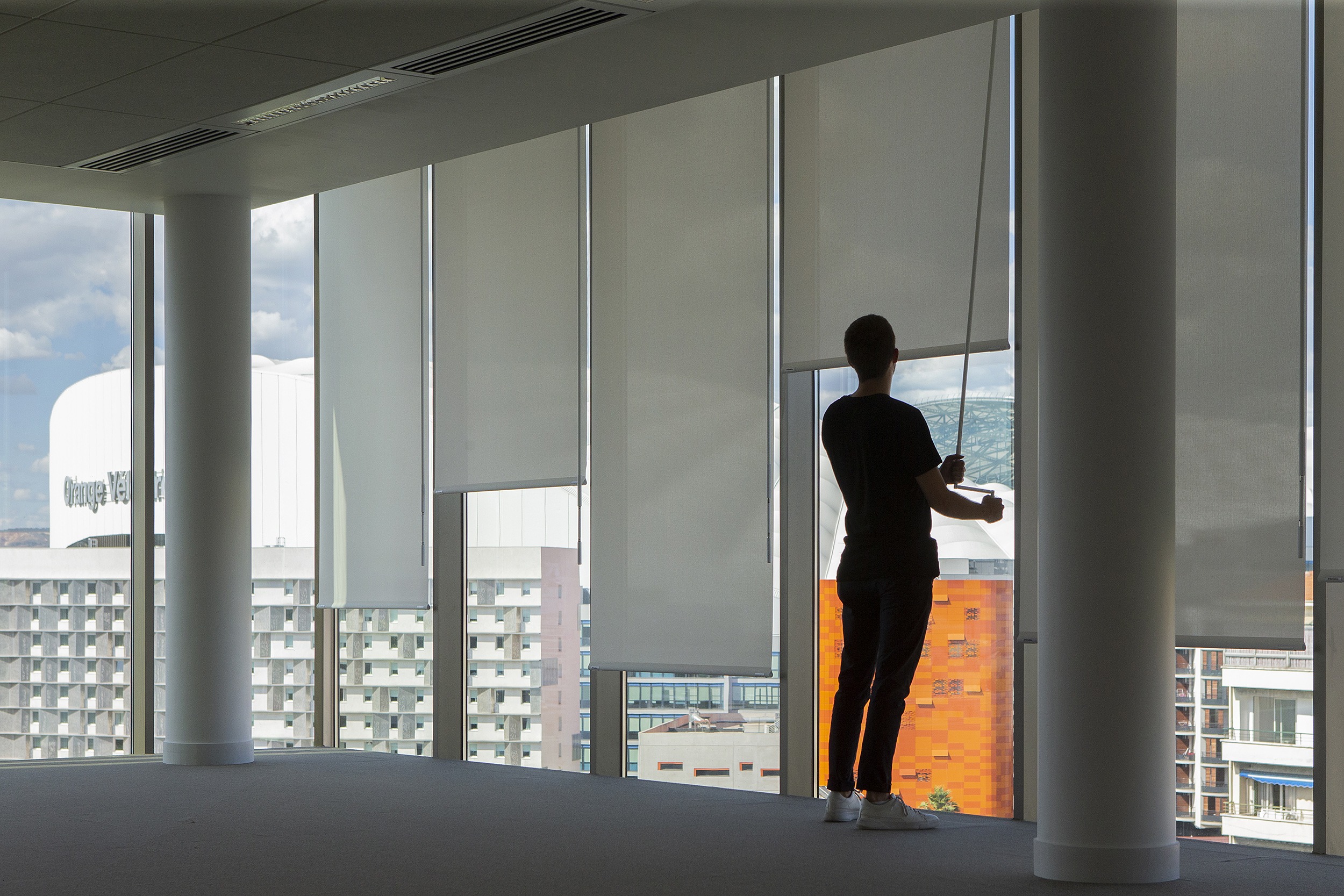 Las cortinas enrollables Premium Plus de Bandalux, accionadas con manivela y soporte doble, integran el tejido Screen, que aporta eficiencia térmica, confort visual y valor estético. Estos sistemas contribuyeron a la obtención de la Certificación HQE en oficinas y servicios. El proyecto Pyramides d’Argent recibió el primer premio en la categoría “Directional building” en 2019.