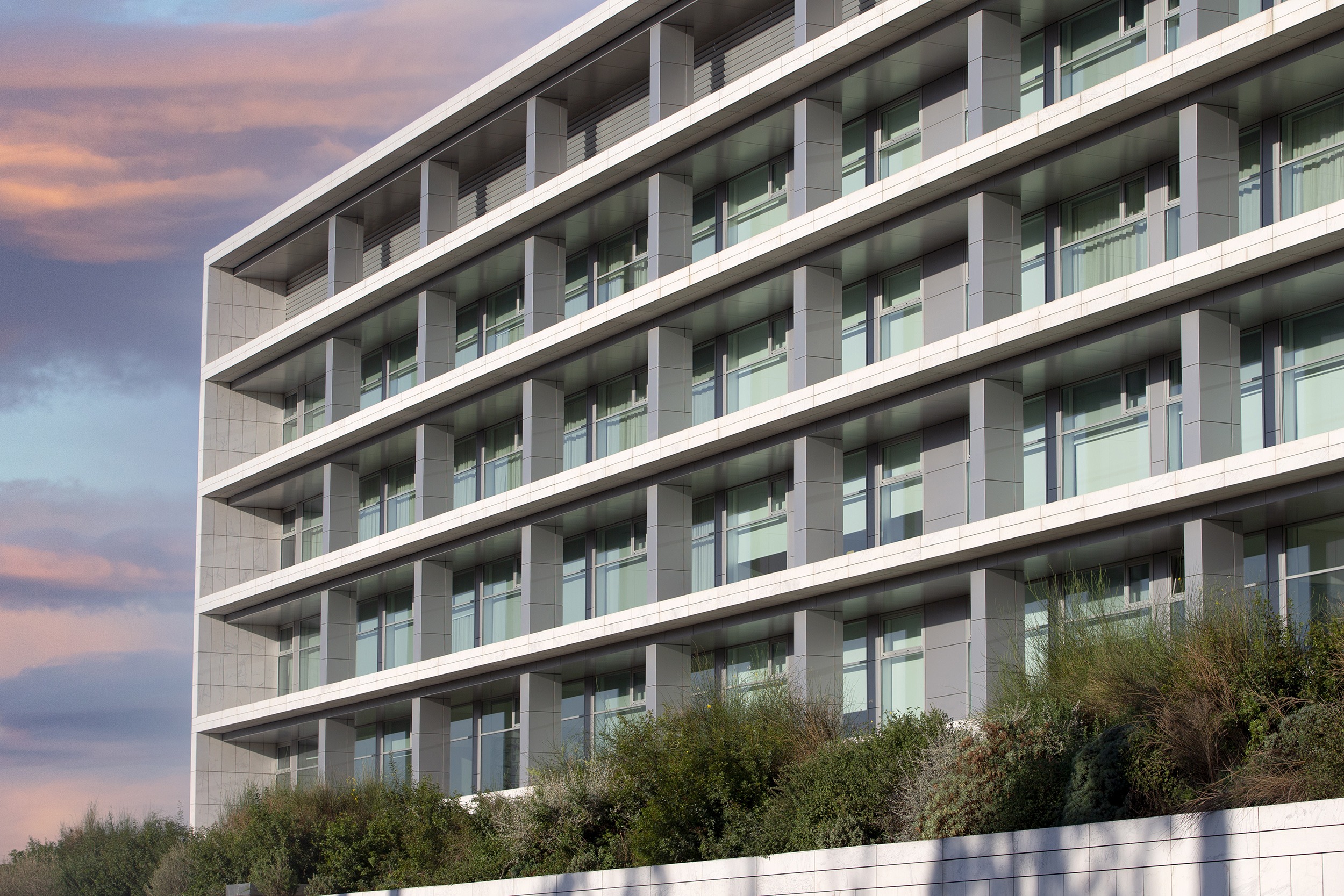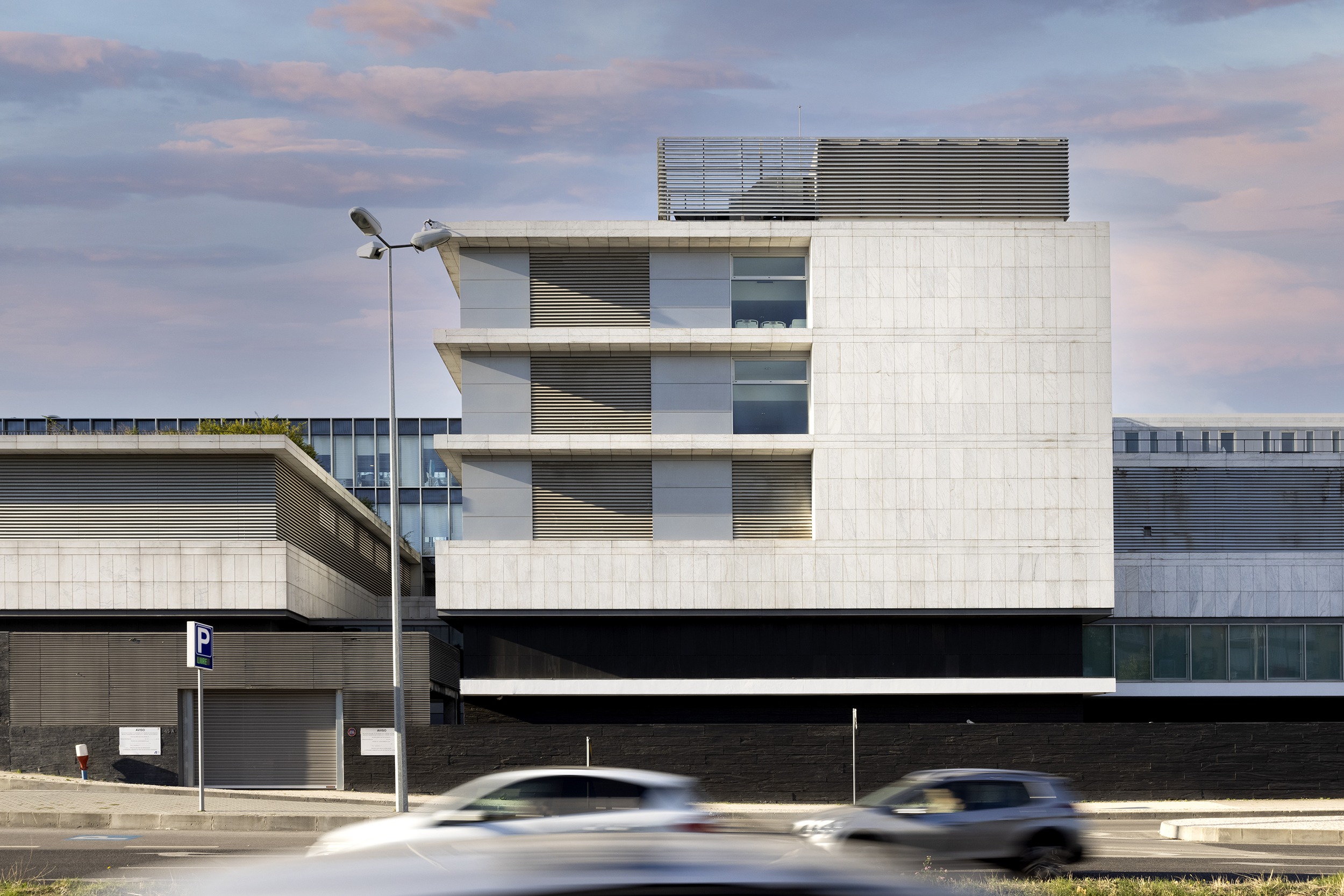 En esta clínica galardonada con el Premio Valmor 2007, la luz natural se integra como parte del diseño para crear espacios cómodos para pacientes y personal médico. Las cortinas enrollables Arion y Premium Plus se adaptan a ventanas de distintas dimensiones, ofreciendo confort visual y control de iluminación, mientras se integran perfectamente en la fachada.