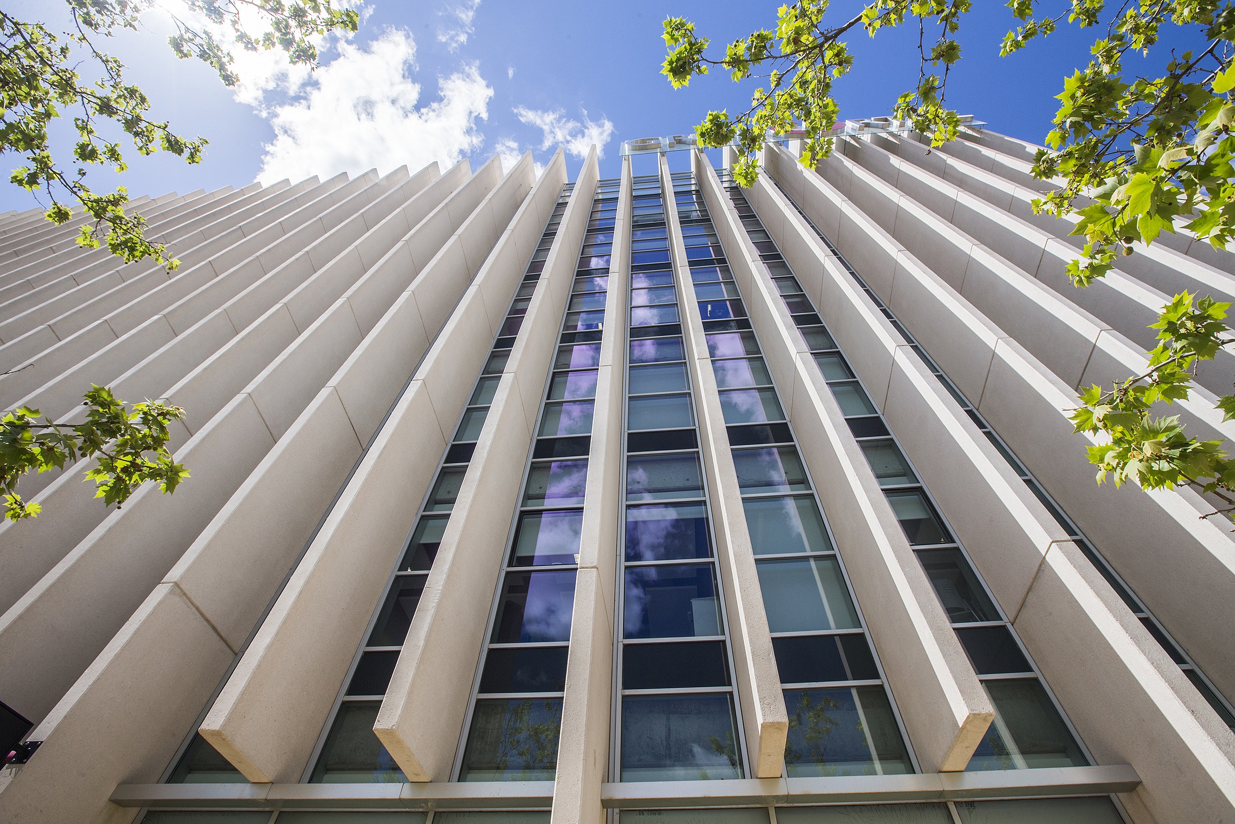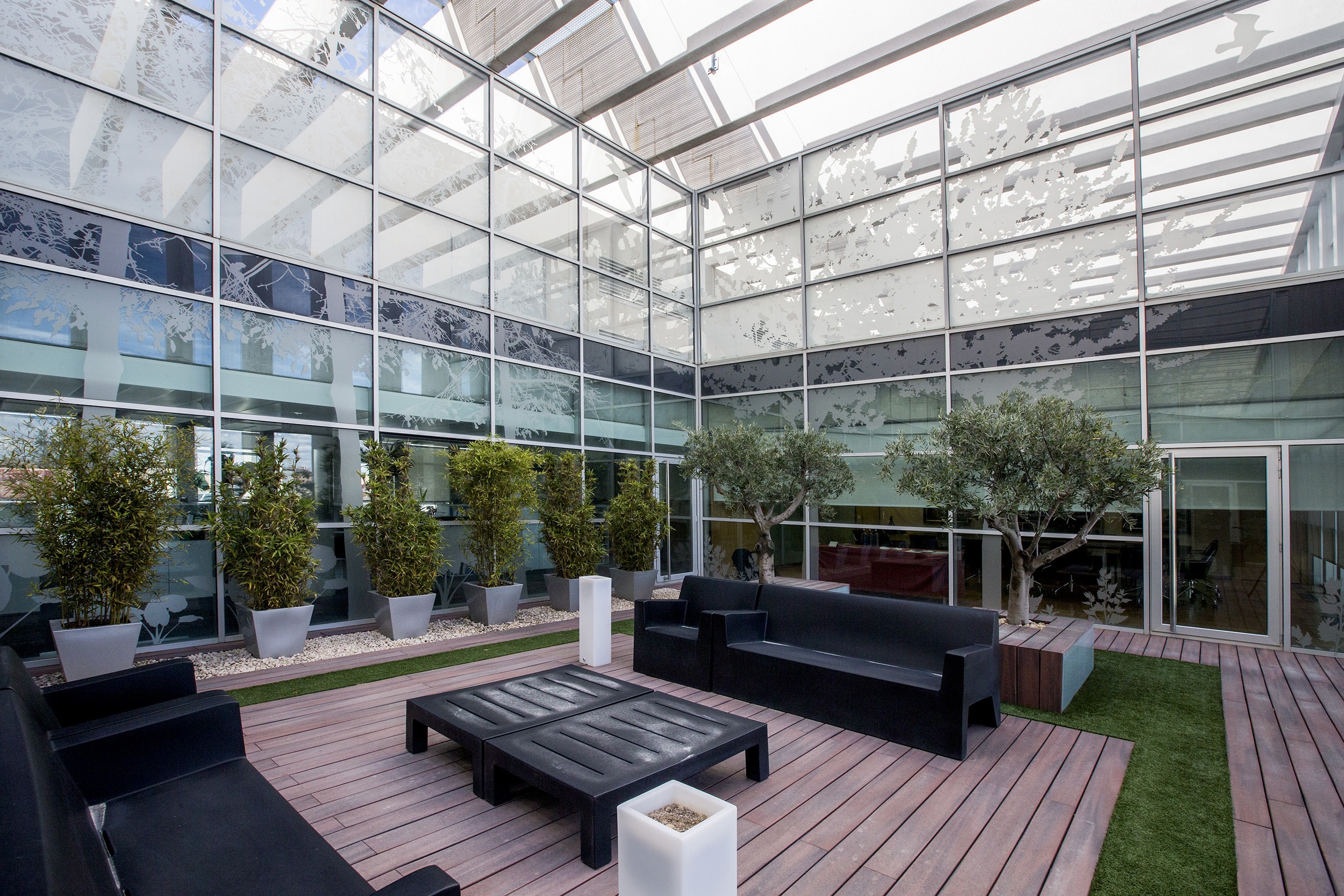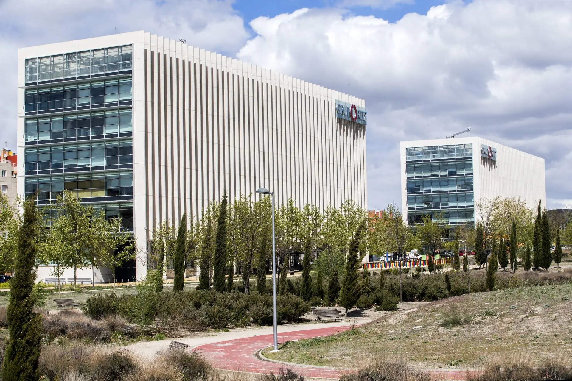 El complejo de oficinas incorpora energías renovables y medidas pasivas como acristalamientos eficientes y protección solar para optimizar el confort térmico. Las cortinas enrollables Premium Plus de Bandalux, combinadas con tejido Screen, ofrecen un reflejo solar eficaz manteniendo las vistas al exterior.