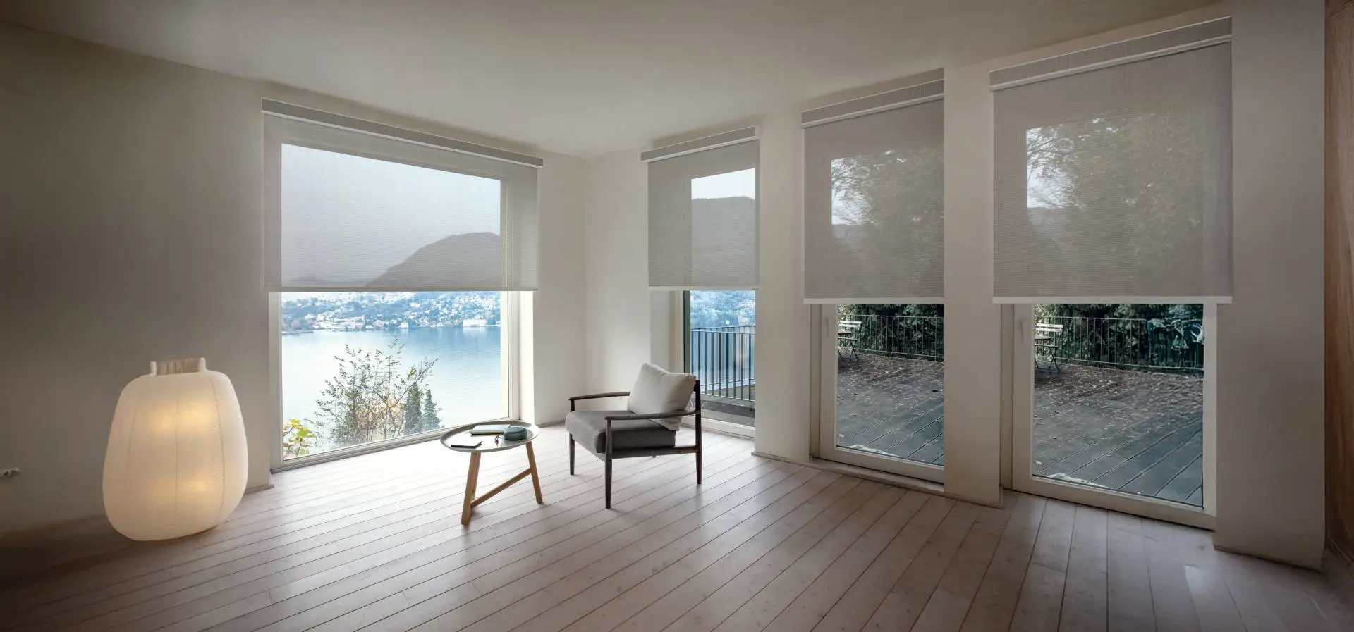 La Q-Style es una cortina enrollable con cajón decorativo de líneas rectas, pensada para integrarse de manera elegante en cualquier espacio interior.