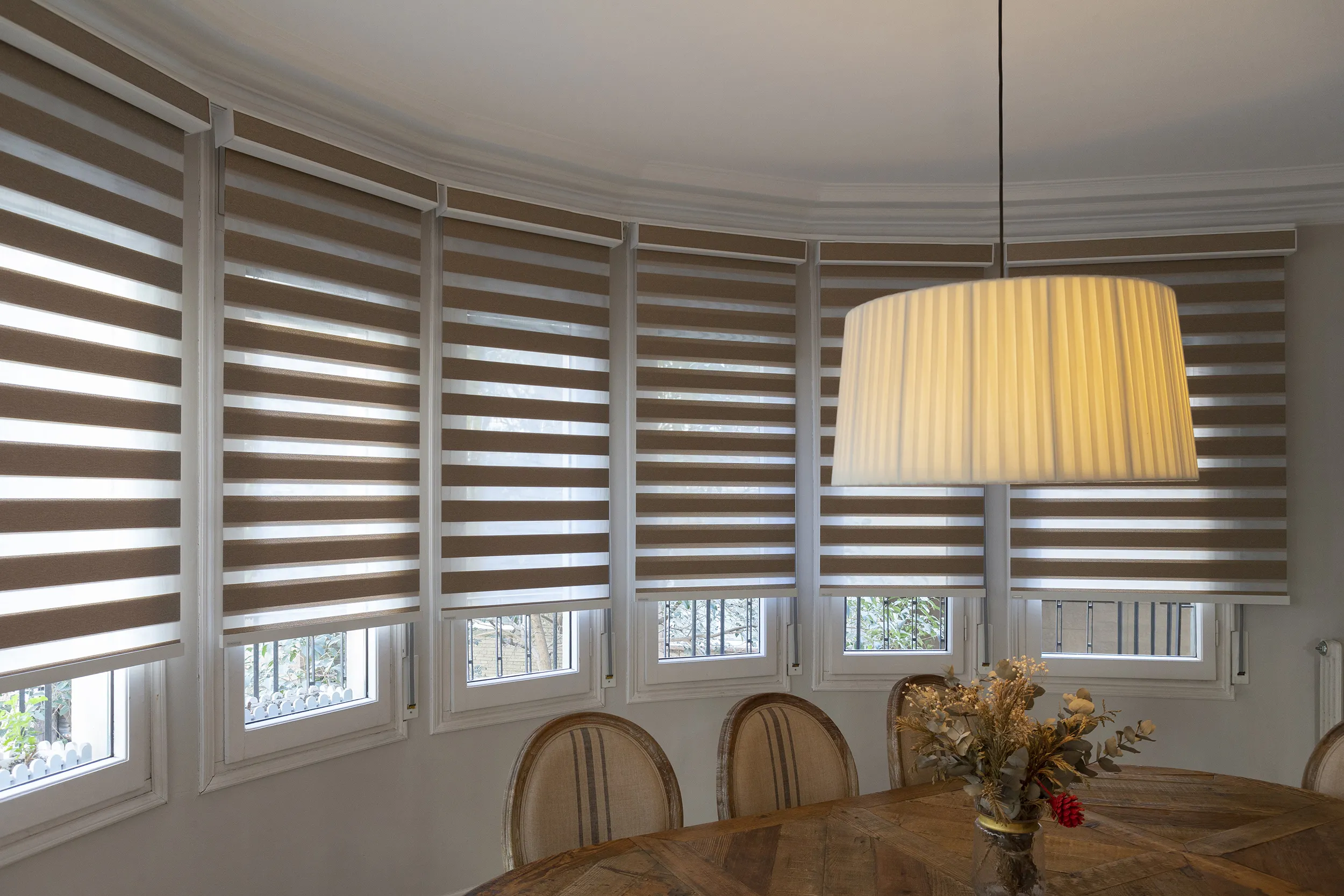 Commonly used in hotels and classic residential interiors, it offers gradual light control depending on the position of both layers, allowing elegant transitions between bright and intimate atmospheres.