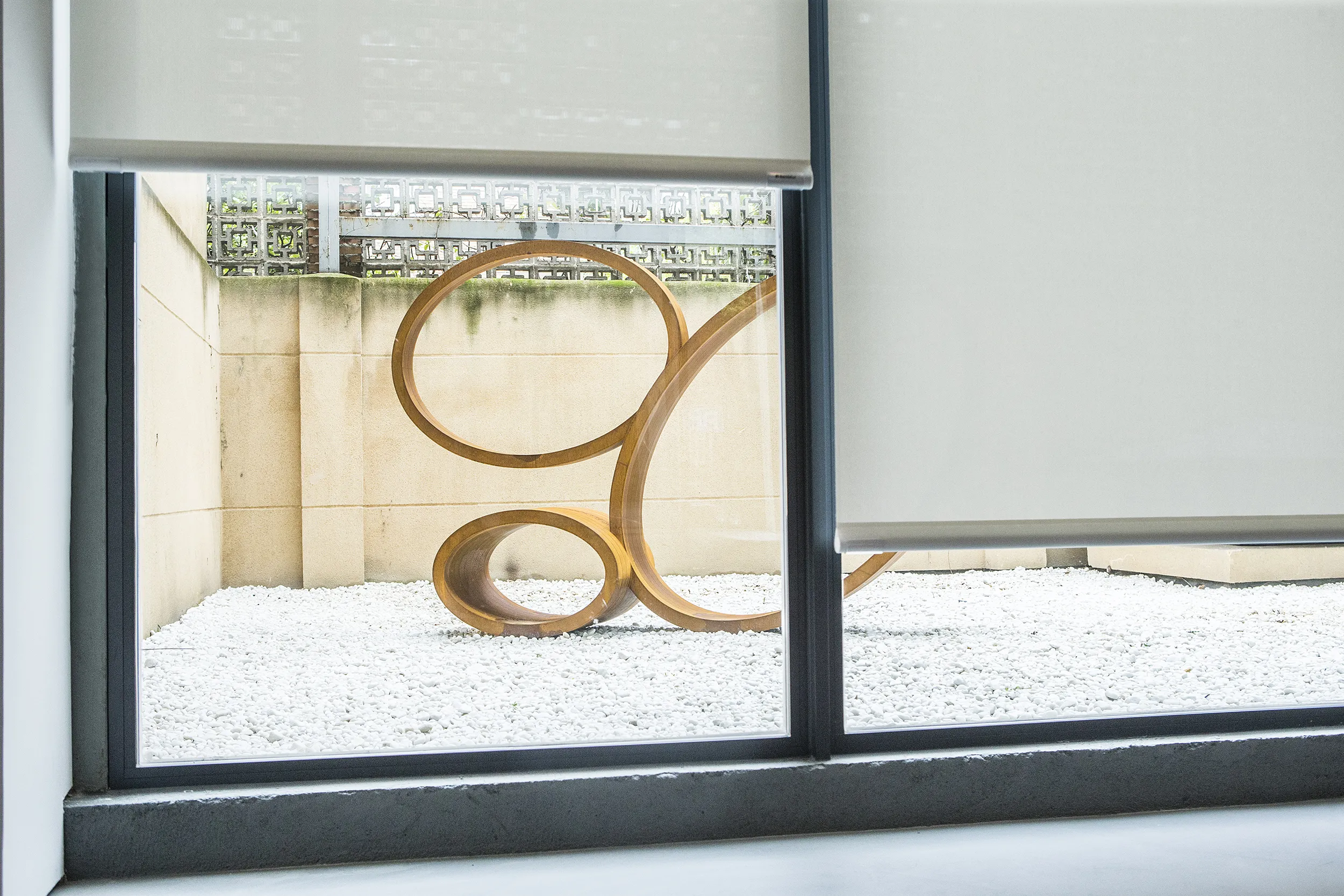 To meet this need, large Premium Plus roller shades have been installed, with a height of 6 yards in a single fabric piece. These shades soften the impact of sunlight while allowing the perfect viewing of artworks, maintaining just the right balance of brightness.