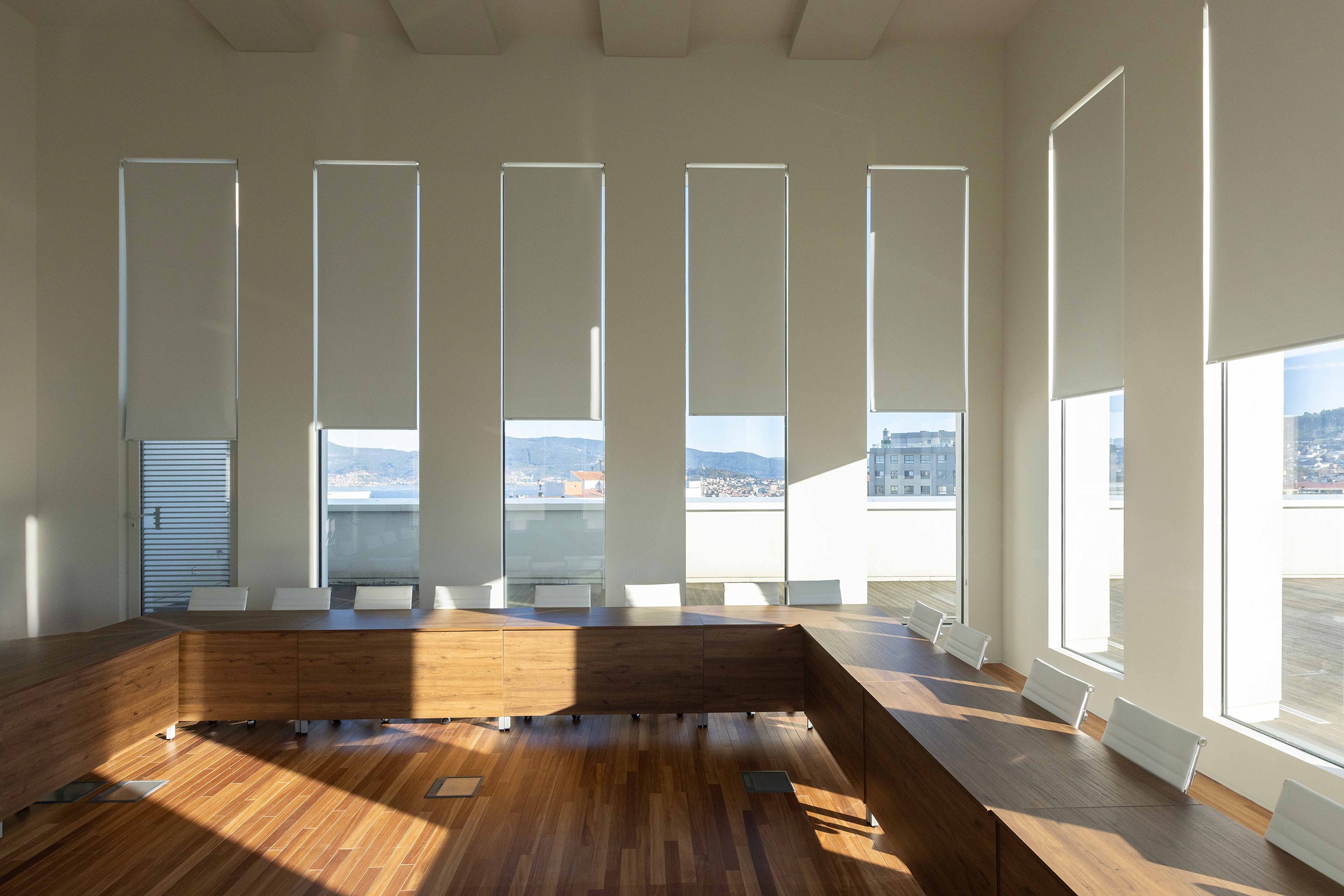 This solution not only reduces glare and enhances privacy in workspaces such as courtrooms and offices but also contributes to the building’s energy efficiency.
