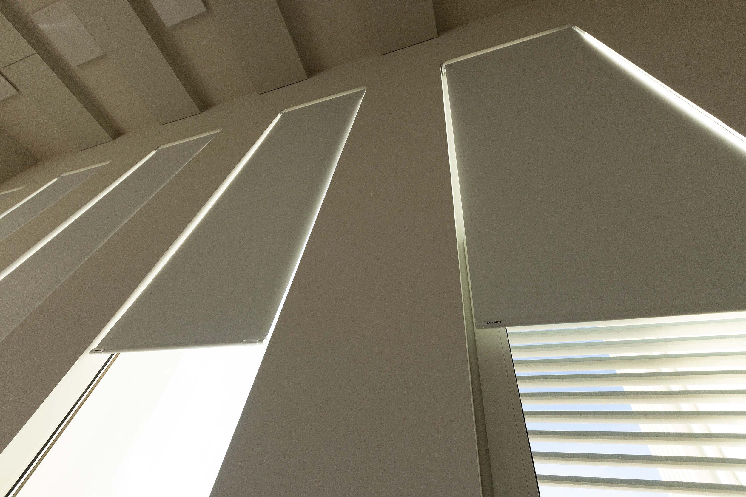 The project incorporates the Bandalux Fit-Box system, a discreet and highly effective solar protection solution designed specifically for installation within window frames, making it ideal for renovating existing buildings. The Fit-Box system was combined with Blackout fabric, offering superior solar control and high thermal insulation—essential for maintaining a stable interior temperature and ensuring visual comfort for both staff and visitors.