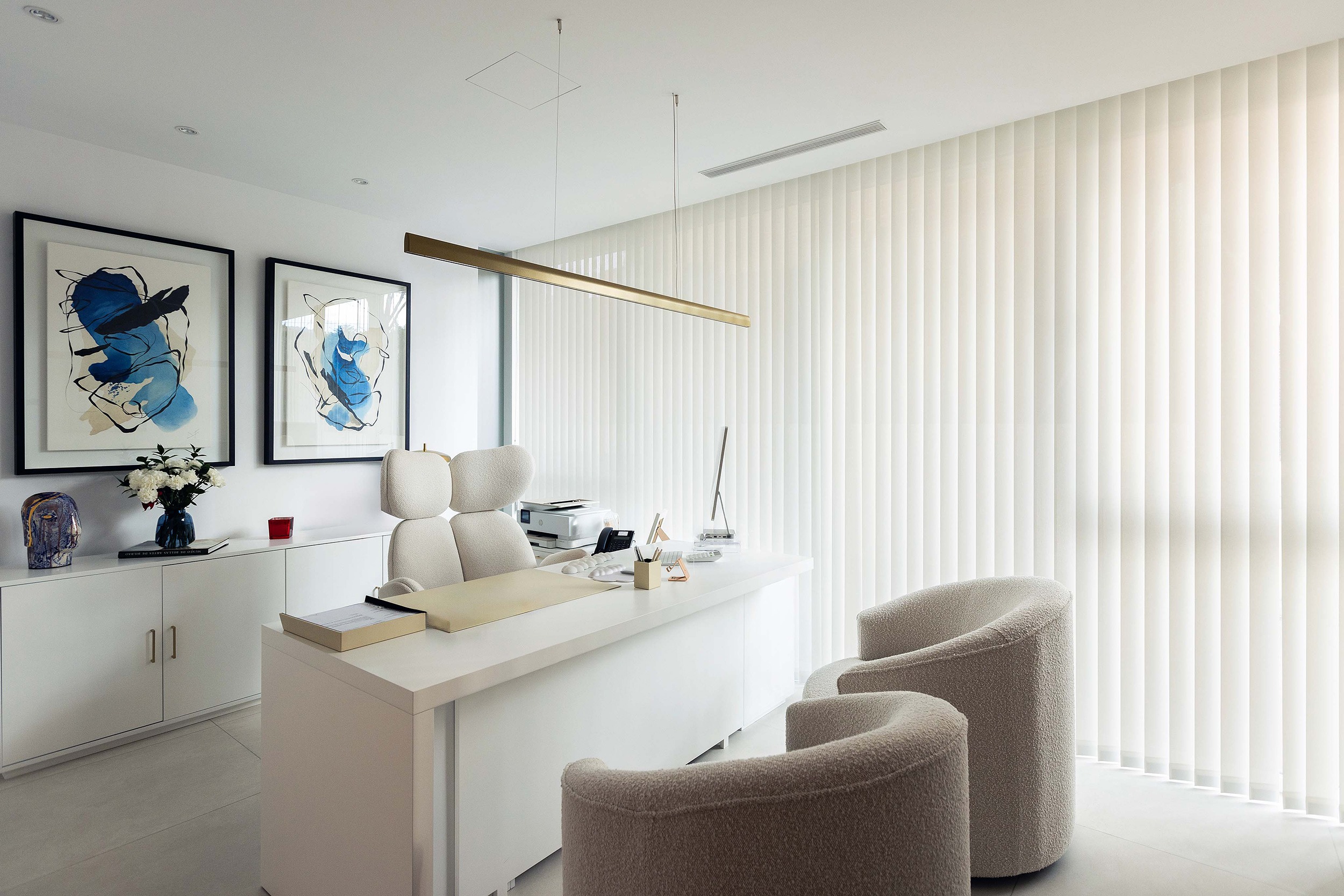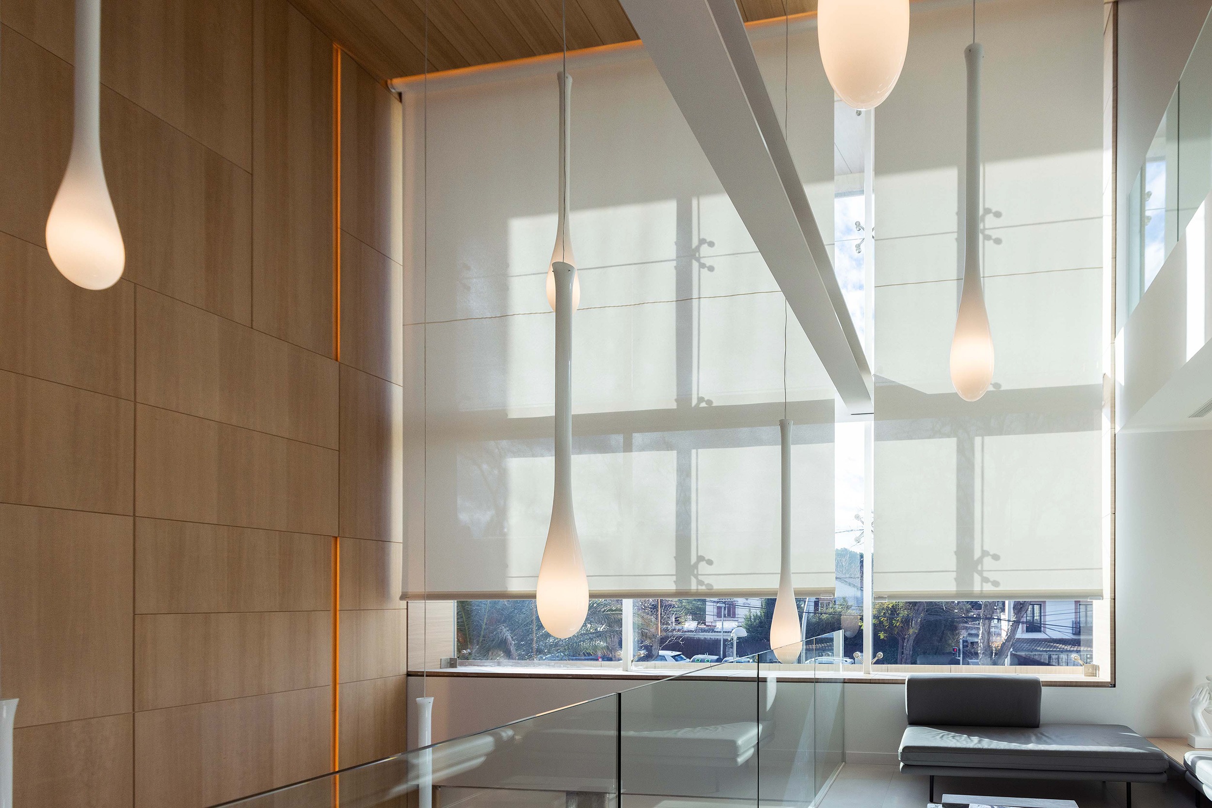 As an integral part of the interior design, solar protection solutions were incorporated to enhance both comfort and the space’s aesthetics. Notable among these are the Arion and Premium Plus roller systems, along with pleated shades and vertical blinds, chosen for their efficiency, versatility, and ability to integrate harmoniously into each environment.