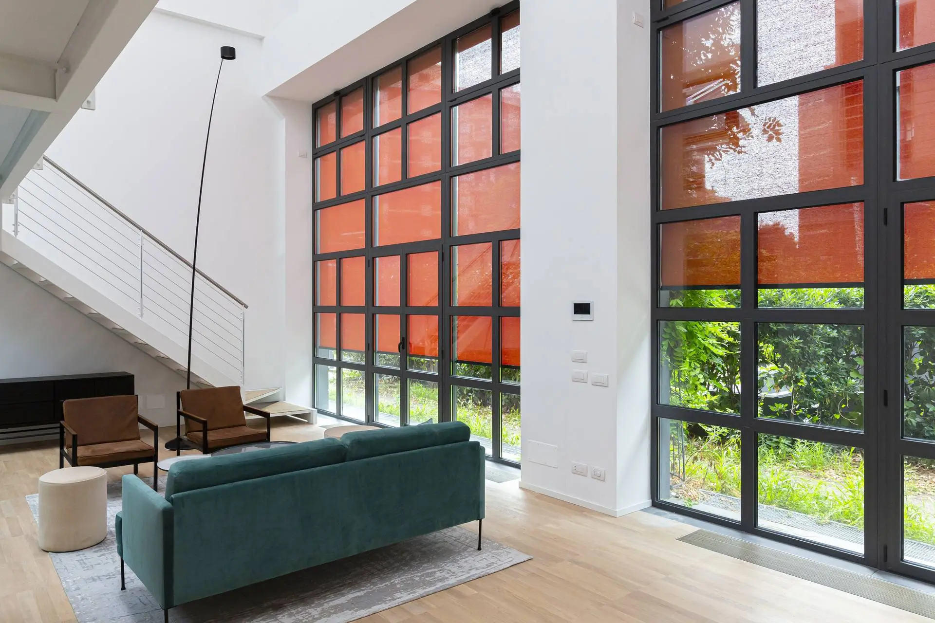 To cover the double-height windows, our B-Box roller shades are installed on the exterior for maximum comfort and solar protection.
