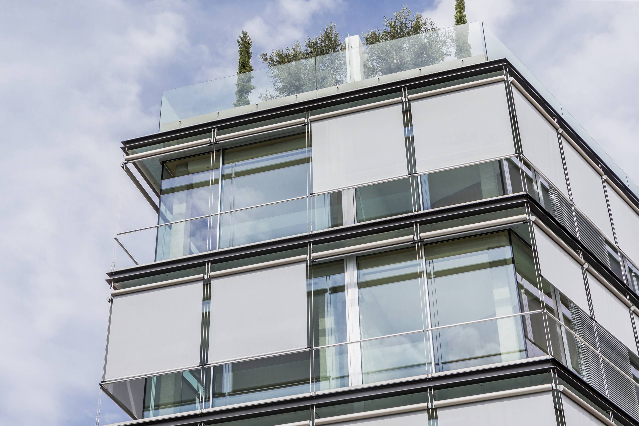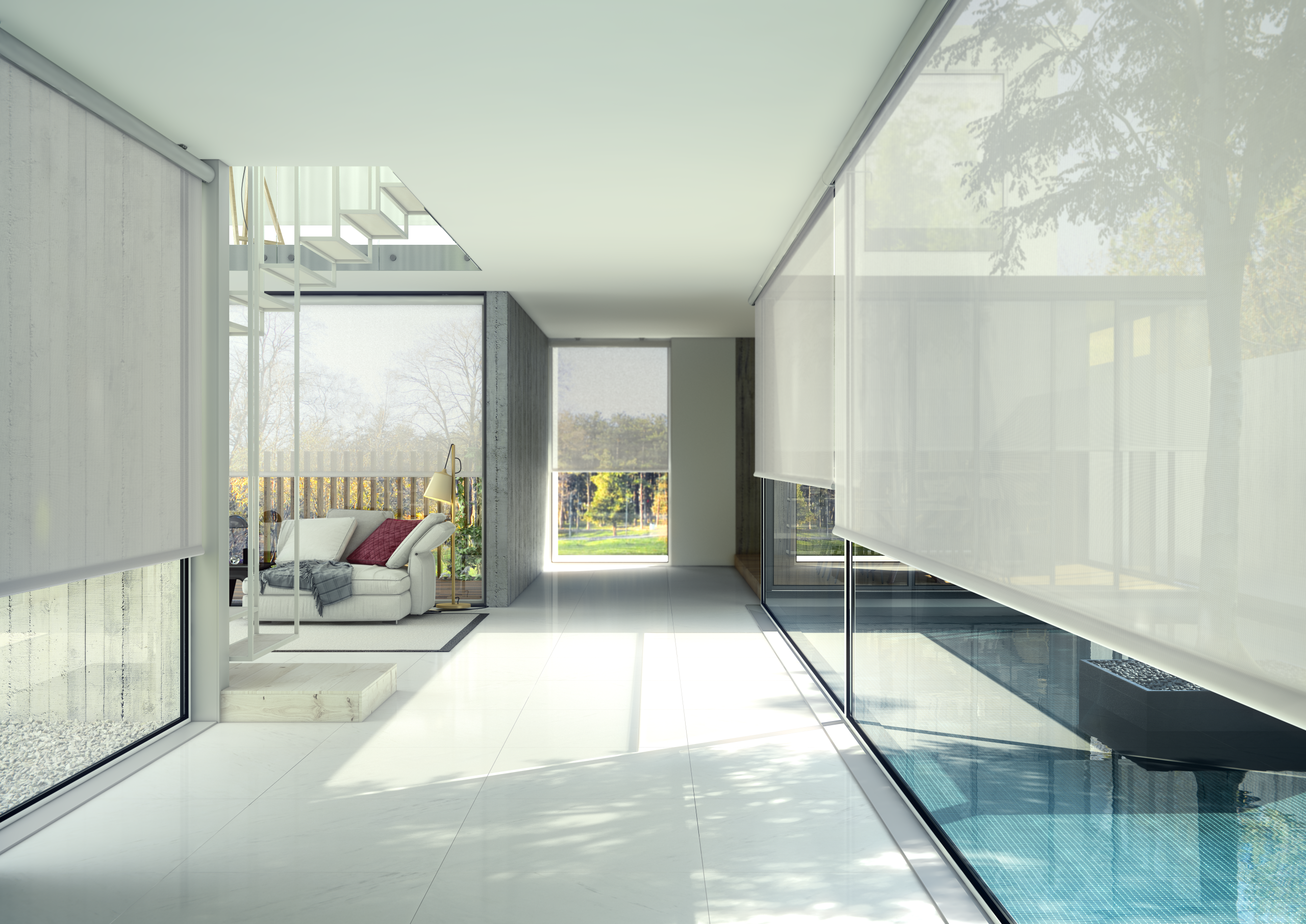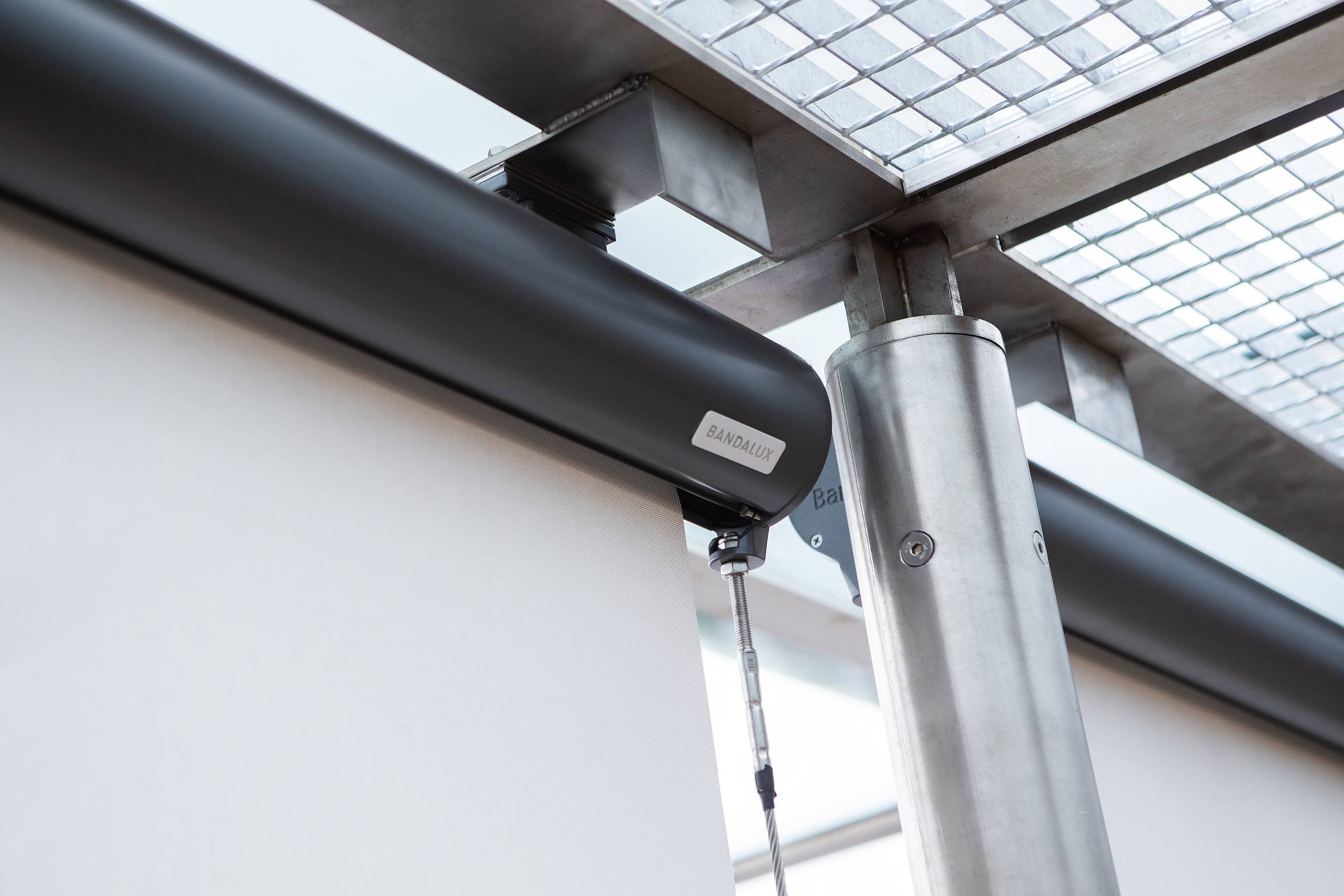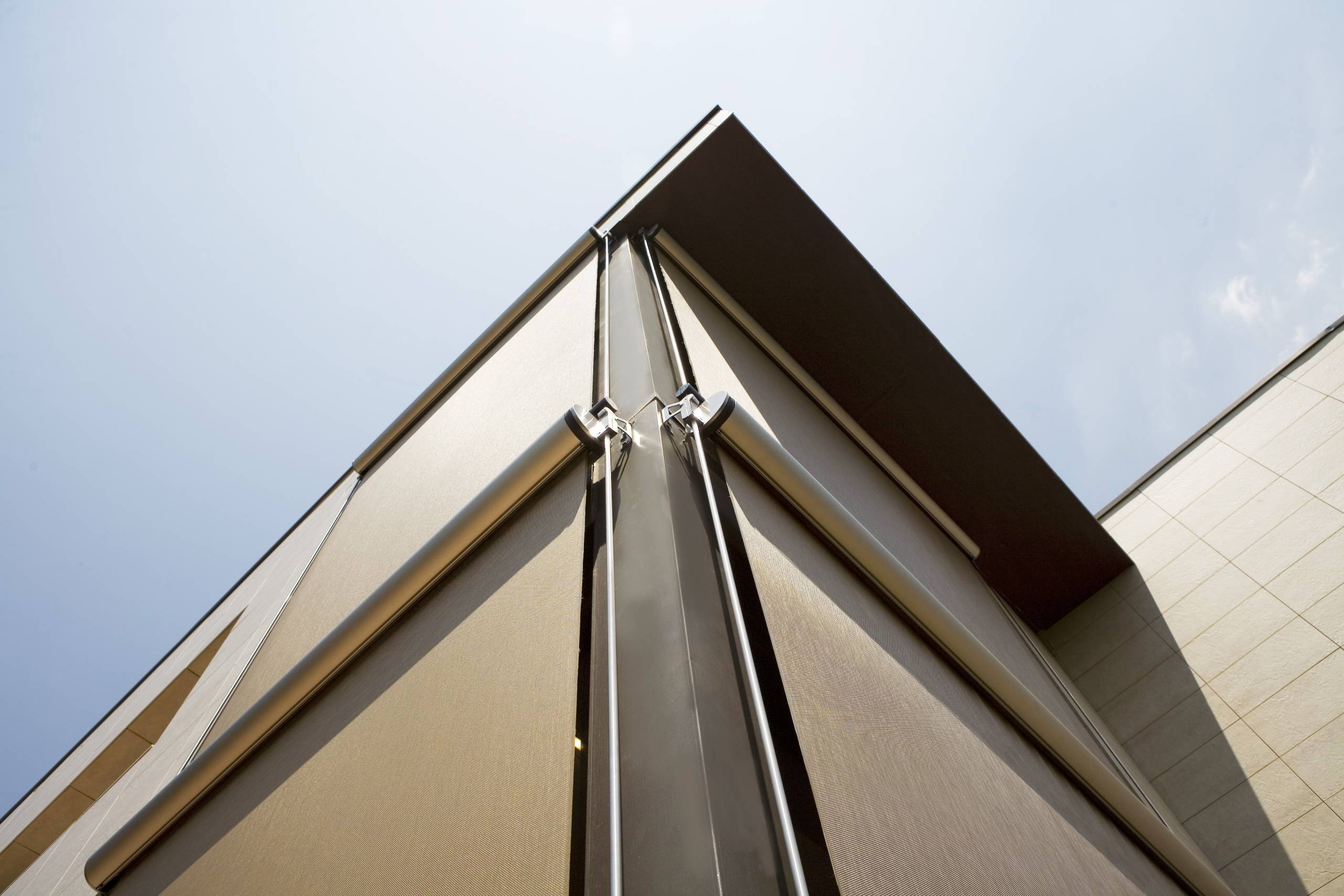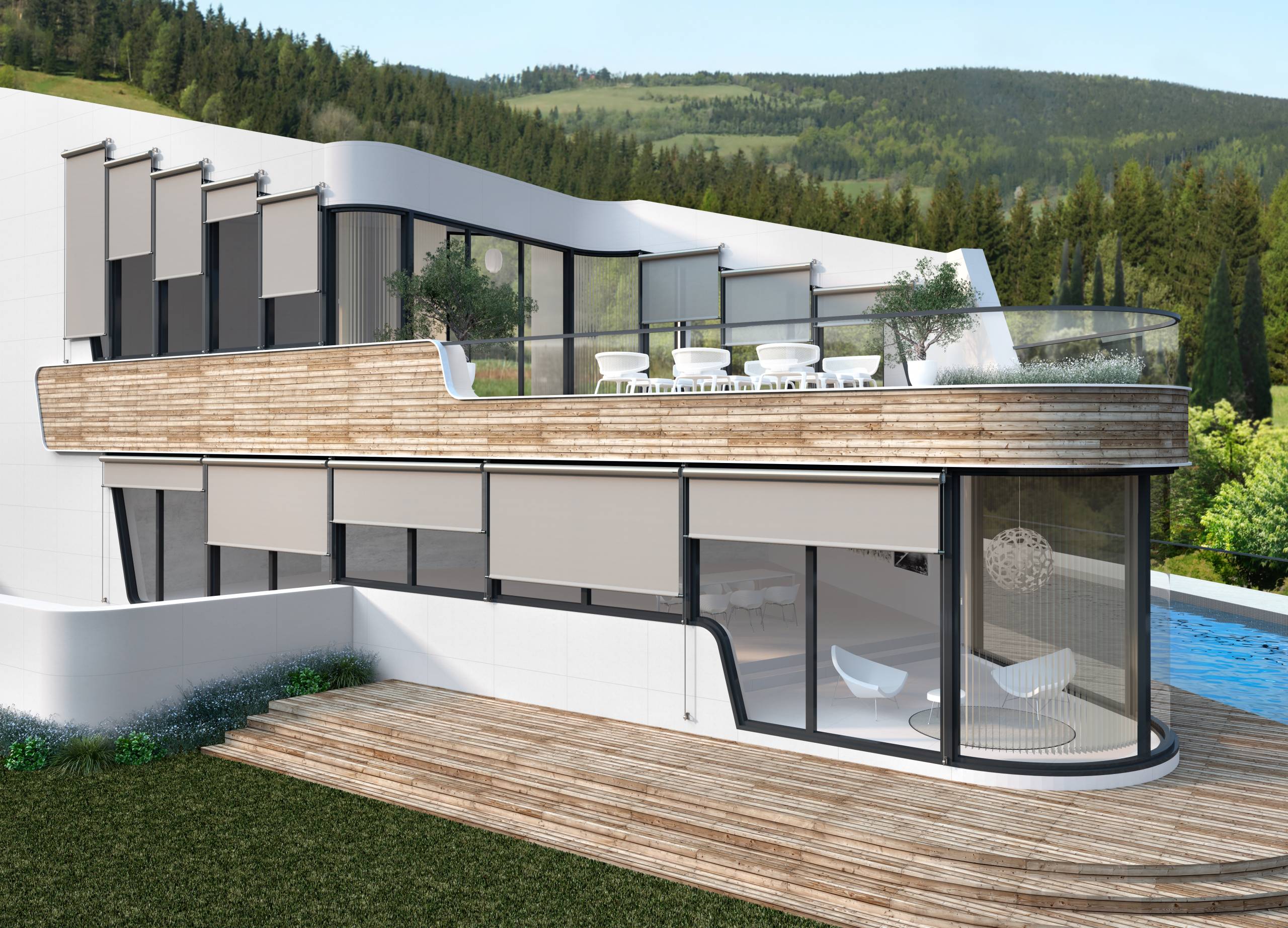 The O-Box is a roller shade with a cylindrical cassette and stainless steel components that withstand the most demanding outdoor conditions.